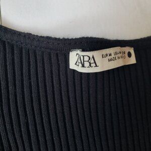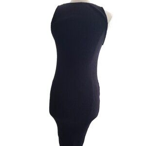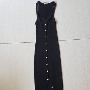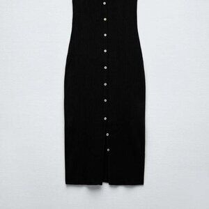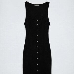 Zara Bodycon Ribbed Knit Button Down Sleeveless Black Midi Dress