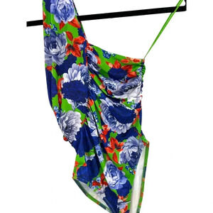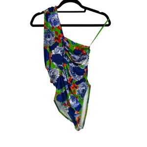 Zara Bodysuit Floral Asymmetrical One Shoulder Green Size Small
