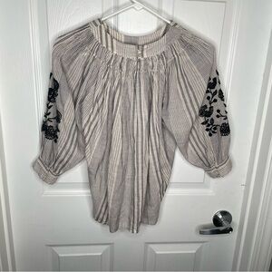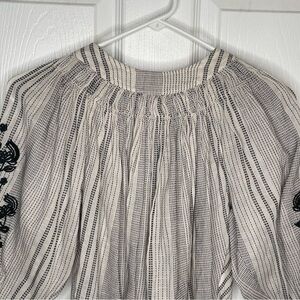 Zara Bohemian Embroidered Balloon Sleeve Blouse in Cream/Black Girl's 10