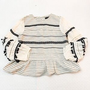 Zara Bohemian Style Black & White Striped Pattern Top SZ S