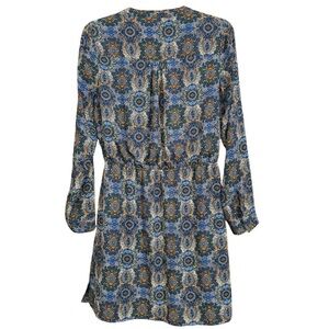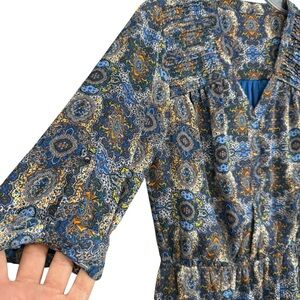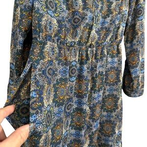 Zara Boho Paisley Print Mini Dress Size S Blue Orange Long Sleeve