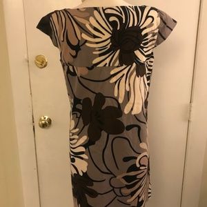 There's a very classic, vintage vibe to this bold print mini dress. Bought in Paris in 2007 at Zara Women, this dress is super unique and has a large floral like print with grey, white, black and taupe colors. You just slip it on over your head, and you instantly look like you've stepped out of Paris Vogue.