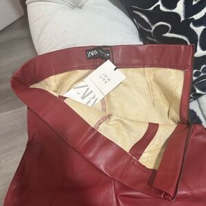 Vibrant red leather trousers from Zara. Eye-catching and stylish.
