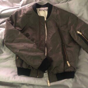 Olive green bomber jacket from zara. gold zippers, very comfortable.