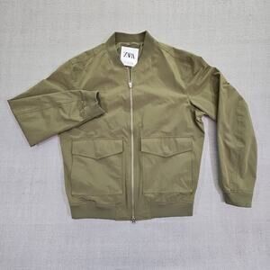 Zara Bomber Jacket Men's Medium Olive Green Two Way Zipper Five Pockets