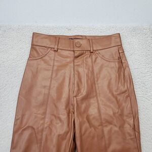 Zara Bootcut Faux Leather Pants Women's XS Brown Pockets Comfort Fit Ankle Zip.