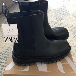 Zara chunky lug sole chelsea boots! Brand new in the box never worn, size 9!
