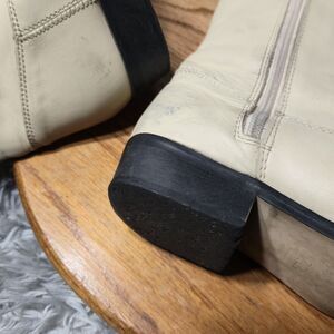 Zara Boots Women Size 5.5-6 EU 36 Leather Cream Ivory Western Cowboy Ankle Boot