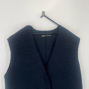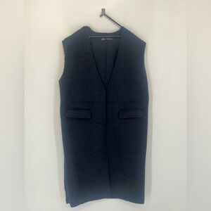 Zara Boucle Knit Textured Open Front Sleeveless Long Vest Minimalist Coat Jacket