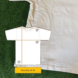 The label says 13-14, however, please the measurements for a better fit. Approximate Flat Lay Measurements are: