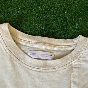 Zara Boxy Fit Solid Beige Big Pocket Short Sleeve Crewneck T-Shirt Size 13-14