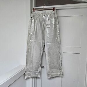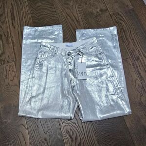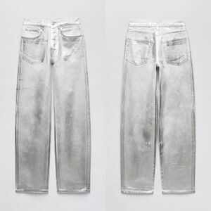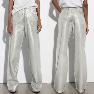 🆕️ Zara Boy Boy Metallic High Rise Relaxed Fit Jeans in Silver