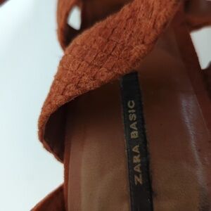 Zara Braided Lace Up Suede Stiletto Heels Brunt Orange 38/7.5 summer bohemian