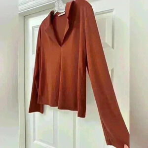 Zara Brick Red Long Sleeve collared V Neck Y2K Style Size Small