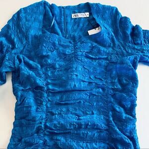 Zara Bright Blue Ruched Bodycon Midi Dress Bloggers Favorite Size L