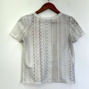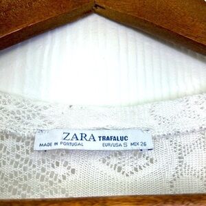 Zara - Bright Floral White Lace Short Sleeve Top Size Small