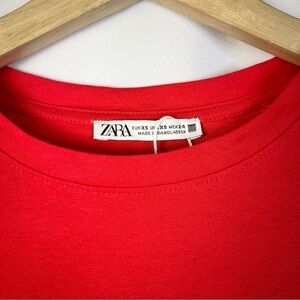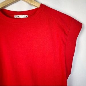 Zara Bright Red Crewneck Cap Sleeve Muscle Short Sleeve Tee