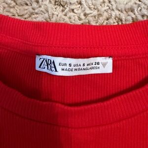 Zara Bright Red Ribbed Tank with Ruffle Sleeves