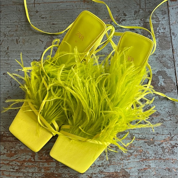Zara Bright Yellow Feathered Sandals