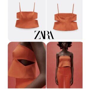 Zara Bright orange cutout camisole top blouse Sz L NWOT spring summer festival