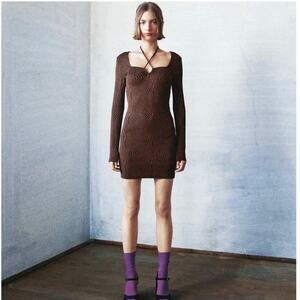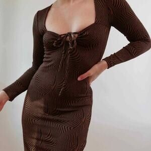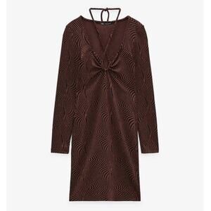 Zara Brown & Black Animal Print Long Sleeve Bodycon Mini Dress Size Small New