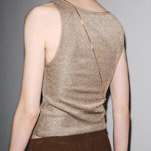 Zara Brown Bronze Metallic Knit Chain Tank Top Sheer Mesh Medium