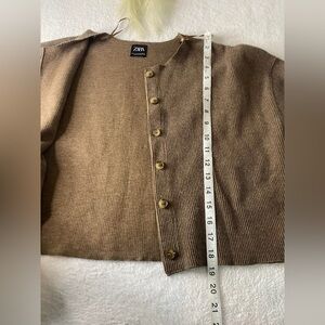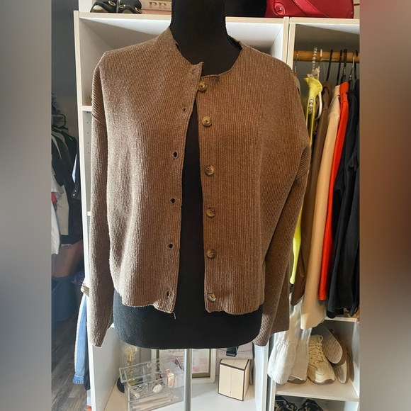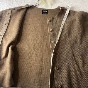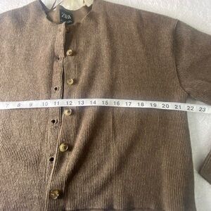 Zara Brown Button-Up Ribbed Jacket