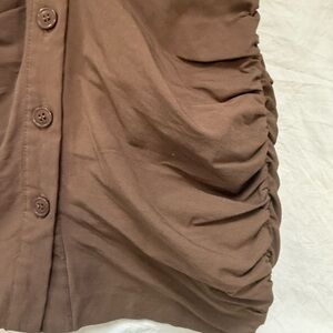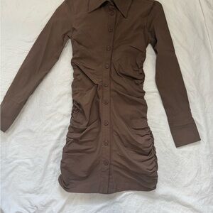 This chic brown dress from Zara features a buttoned design with a dress shirt collar, perfect for casual outings or a night out. Its long cuffed sleeves and bodycon fit offer a sophisticated yet comfortable look, making it a versatile choice for various occasions.