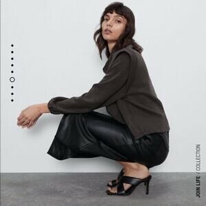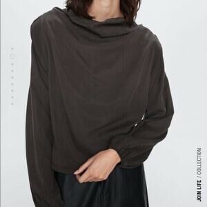 Zara Brown Contrast Draped Sweatshirt High Neck Long Sleeve Sweatshirt Small