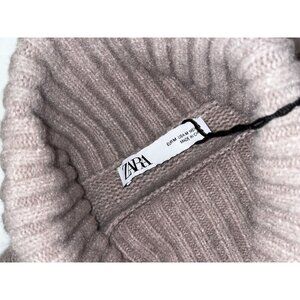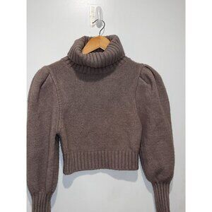 Zara Brown Cropped Turtleneck Puff Sleeves & Ribbed Cuffs Women's Sweater Size M