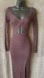 Zara Brown Neutral Long Sleeve V Neck Cut Out Ribbed Stretch Fitted Bodycon Dress with Side Slit