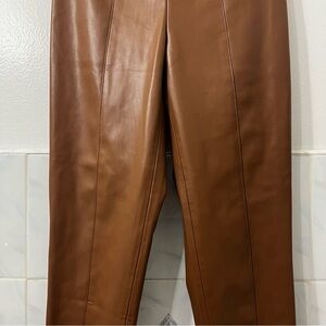 Zara Brown Edgy 80s 90s Casual Chic Minimalist Faux Leather Leggings Pants Small