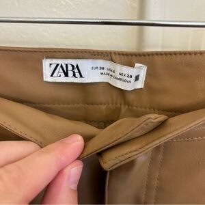 Zara Brown Faux Leather Ankle Pants Size 6 Belt Loops 5-Pocket Style