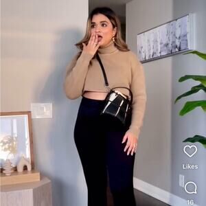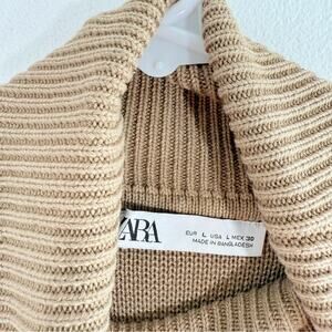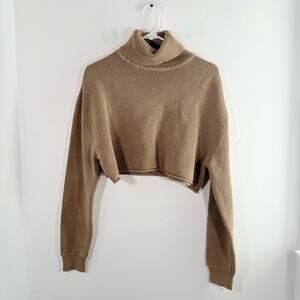 Zara Brown Knit Turtleneck Boxy Cropped Sweater Size Large