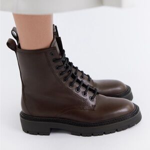 Stylish dark brown leather boots. Lace-up design with sturdy soles. Ideal for versatile wear perfect for fall and winter! New with tags