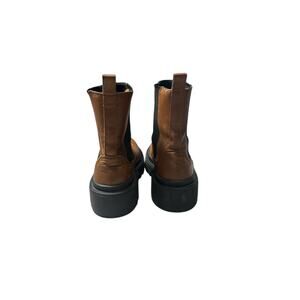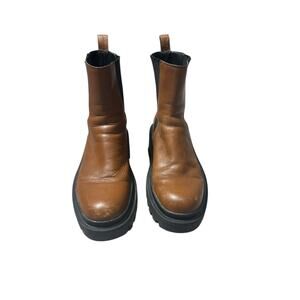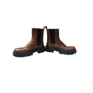 Zara Brown Leather Chunky Lug Sole Chelsea Boots EU 38 US 8