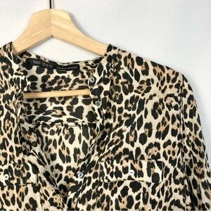 Zara Brown Leopard Print Long Sleeve Button Down XS