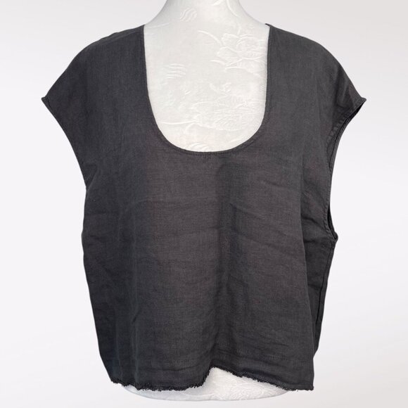 Brown linen blend tank with a raw edge hem and deep armholes. Tag has been removed but this is an authentic Zara piece.