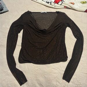 Zara Brown Long Sleeve Top with Gold Accents size M