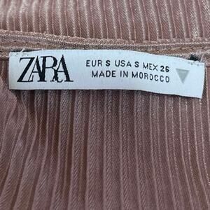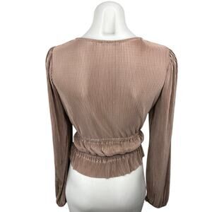 Zara Brown Metallic Pleated V-Neck Long Sleeve Cinched Tie Peplum Blouse Top S