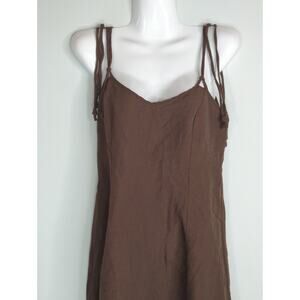 Zara Brown Mini Dress Women's Size XS Tasseled Tie Strap Weekend Beachy Linen