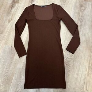 Zara Brown Ribbed Long Sleeve Mini Dress