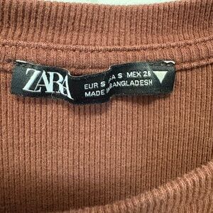 Zara Brown Ribbed long sleeve bodysuit with 2 snap closure. Size Small.