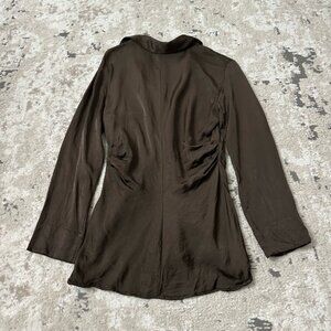 Zara Brown Satin Silk Keyhole Long Sleeve Fitted Button Down Shirt Top Size M