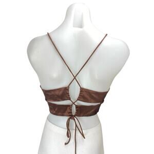 Zara Brown Silk Satin Sleeveless Cut Out Cami Camisole Tank Crop Top Size S