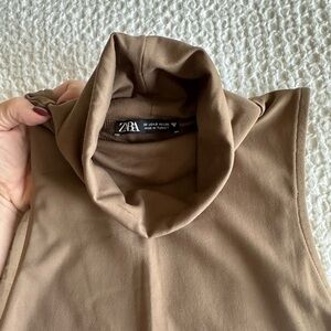 Zara Brown Sleeveless Turtleneck Stretch Bodysuit