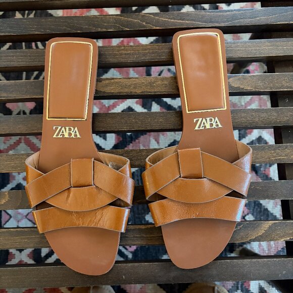 Zara Brown Slide Sandals, Size 39 (Women's 8-8.5)