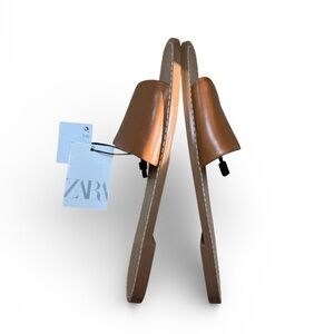 Stylish brown slide sandals from Zara. Pre-owned with signs of wear and tear as well as scuffs as shown in the photos and video but still in good pre-owned condition.