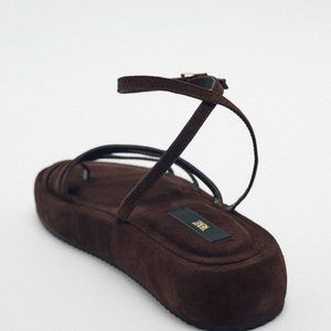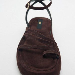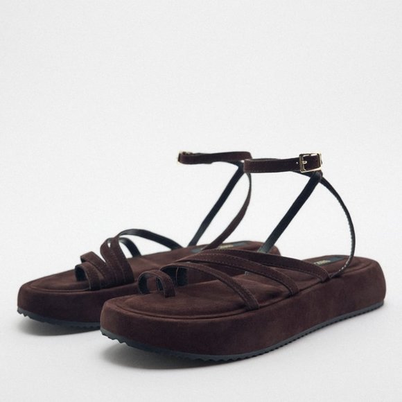 Stylish brown sandals with strappy design. Comfortable flat sole. Perfect for casual wear.
