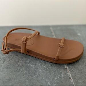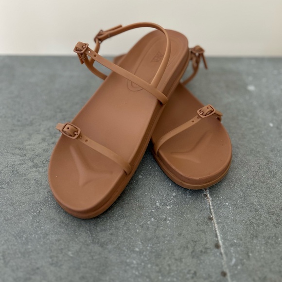 Sleek brown sandals with adjustable rubber straps. Ideal for casual wear.